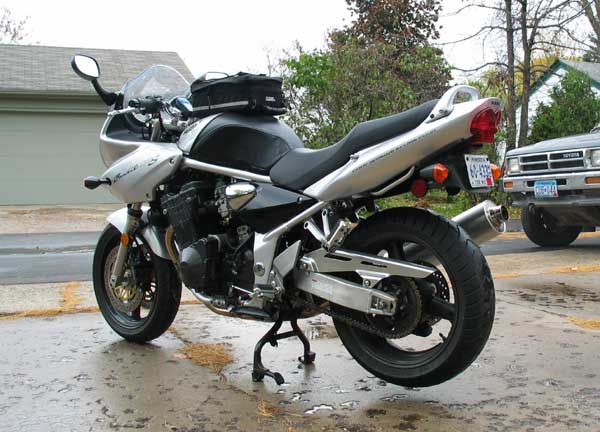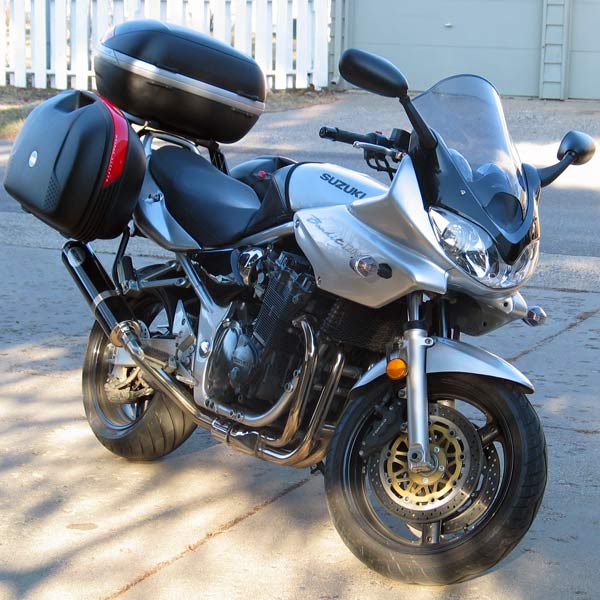I've added a Hayabusa rear shock, $38 shipped from ebay, which really improved control over the ride and handling. It's a no-brainer mod if you have a stock Bandit. I went with Dale Walker's Holeshot Performance slip-on and stage 1 jet kit. That was well worth the money, too. The bike now sounds like it should, and cold starts are better. Power's up a bit, too. I went with a Suzuki touring windscreen, but I'm not sure it did much