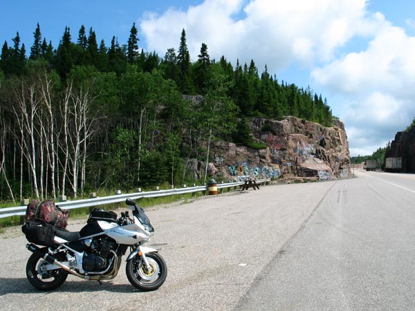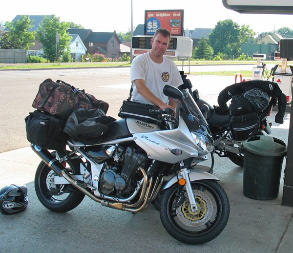 I go for solo rips frequently in the evenings. Since I can't ride to work, I usually don't get out until after supper. By then any sign of rush hour has passed, and the quick jaunt to the edge of town is easy. What pass for curves in Central Minnesota often take a while to reach, but it's always worth it. While I've made leaps and bounds in my riding skill since buying the Bandit, I'm still mellow by any track guru's definition. I barely wipe the chicken strips from the rear tire, and I have yet to drag any hard parts.